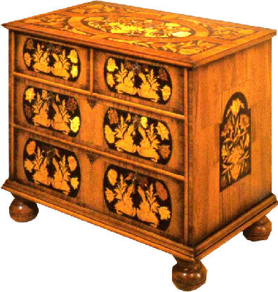 A Fine Replica of a William and Mary Chest c.1750 A high quality chest, made with marquetry inlays faithfully reproduced from photographs